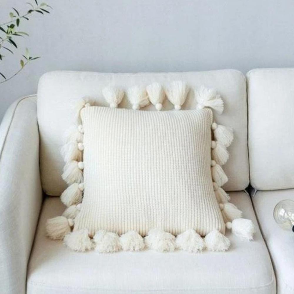 This gorgeous handmade pillow cover is a perfect modern addition to your room. Its cozy and stylish design with cute tassels is a must-have this summer.